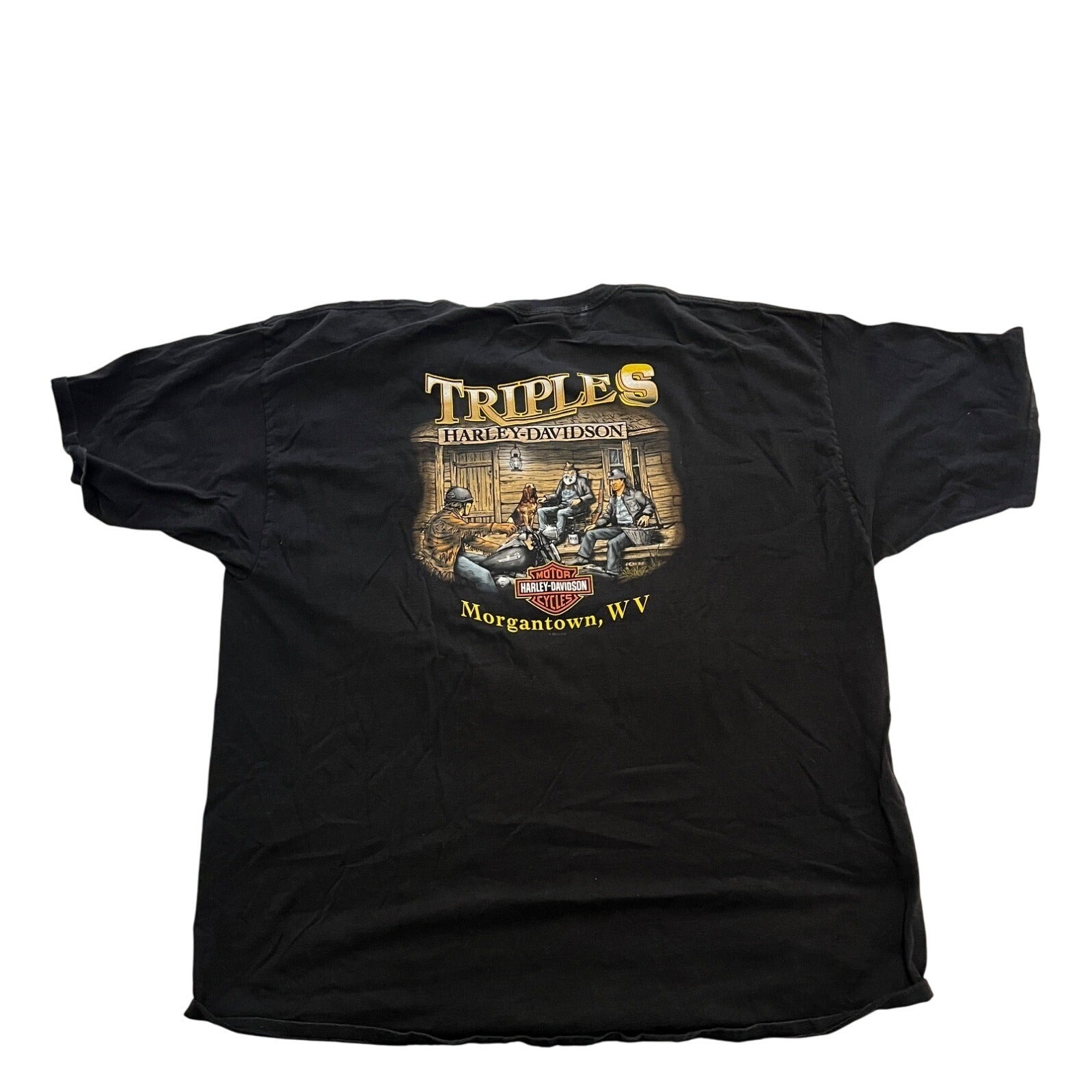 This gently used Harley-Davidson 2015 West Virginia short sleeve t-shirt comes in black, size 4XL. A must-have for collectors and motorcycle enthusiasts, it features bold front and back graphics representing the iconic brand and regional pride.