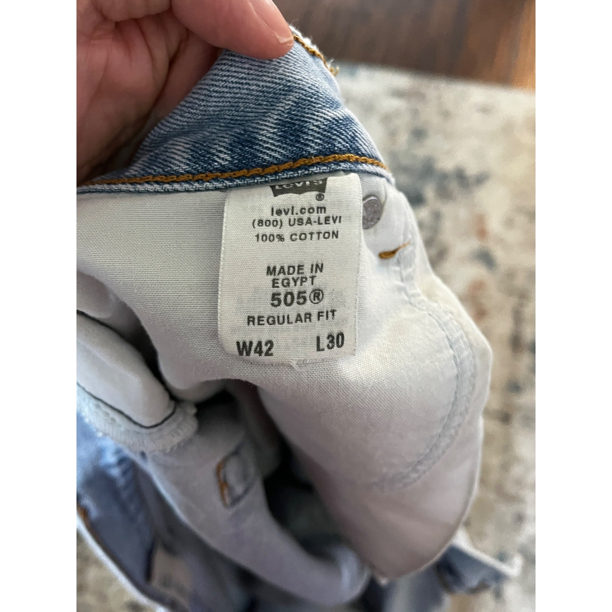 Levi's men's 505 regular fit denim jeans in a light wash, size 42x30. Classic straight-leg style with a zip fly and five-pocket design—ideal for everyday wear with a timeless look.