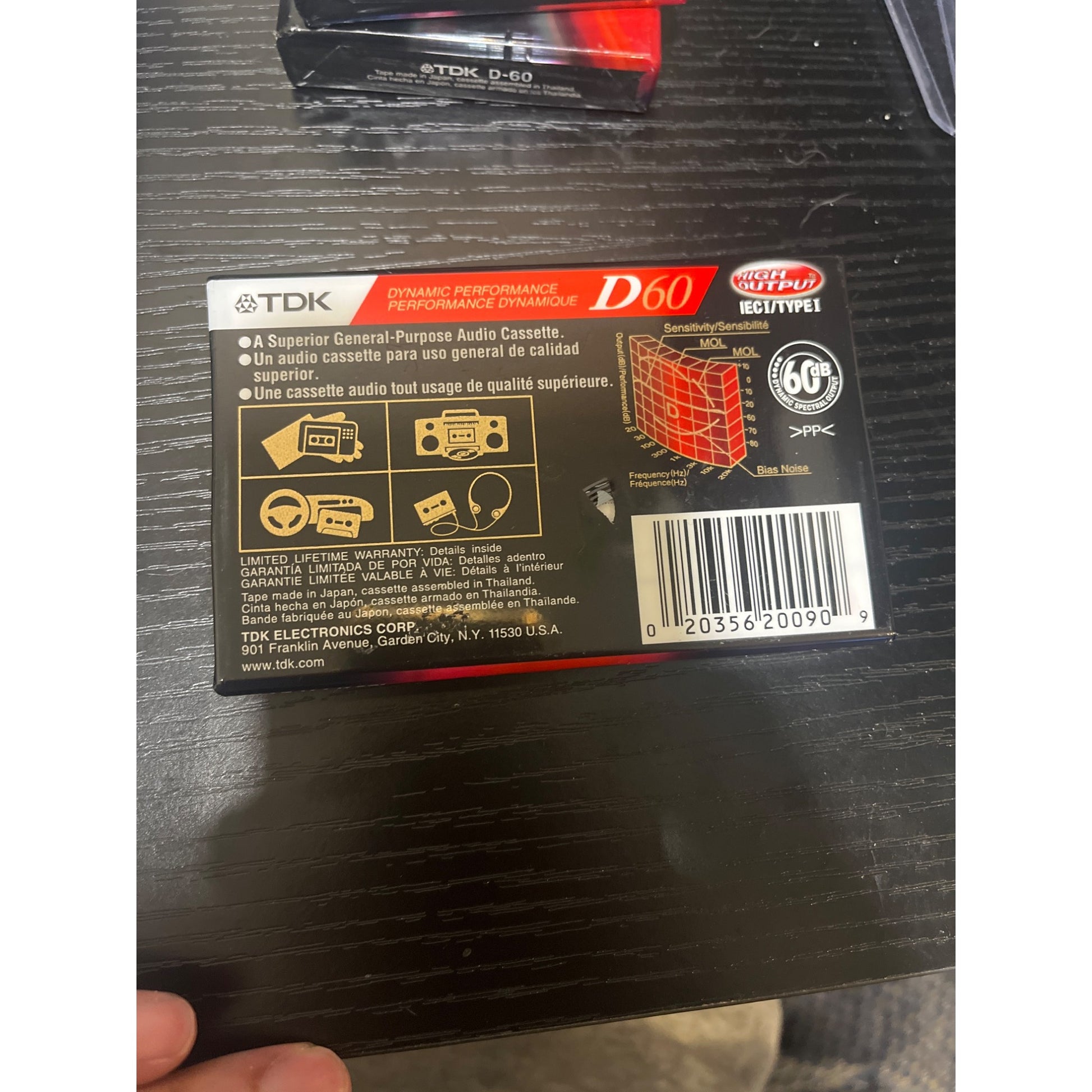 Brand new and sealed set of 5 TDK D60 High Output Cassette Tapes. Ideal for analog audio lovers, mixtape creators, or vintage media collectors. Each 60-minute cassette (30 min per side) is factory sealed and ready for recording or display.