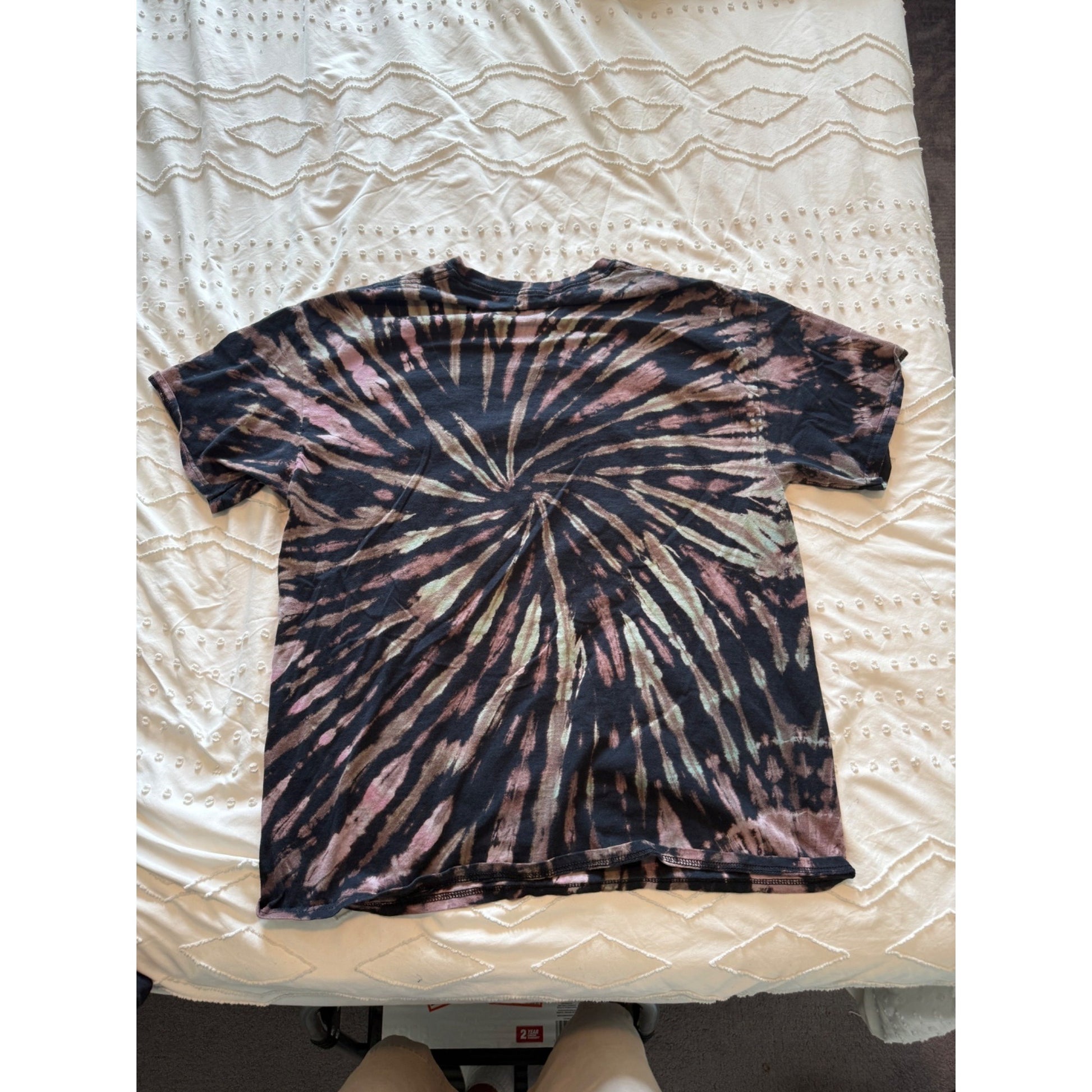 Psychedelic tie dye Pink Floyd T-shirt featuring the legendary Dark Side of the Moon prism graphic. Men’s Size Medium. Classic short sleeve style with vibrant colors, perfect for rock fans, collectors of band merch, or anyone who loves vintage-inspired tees.