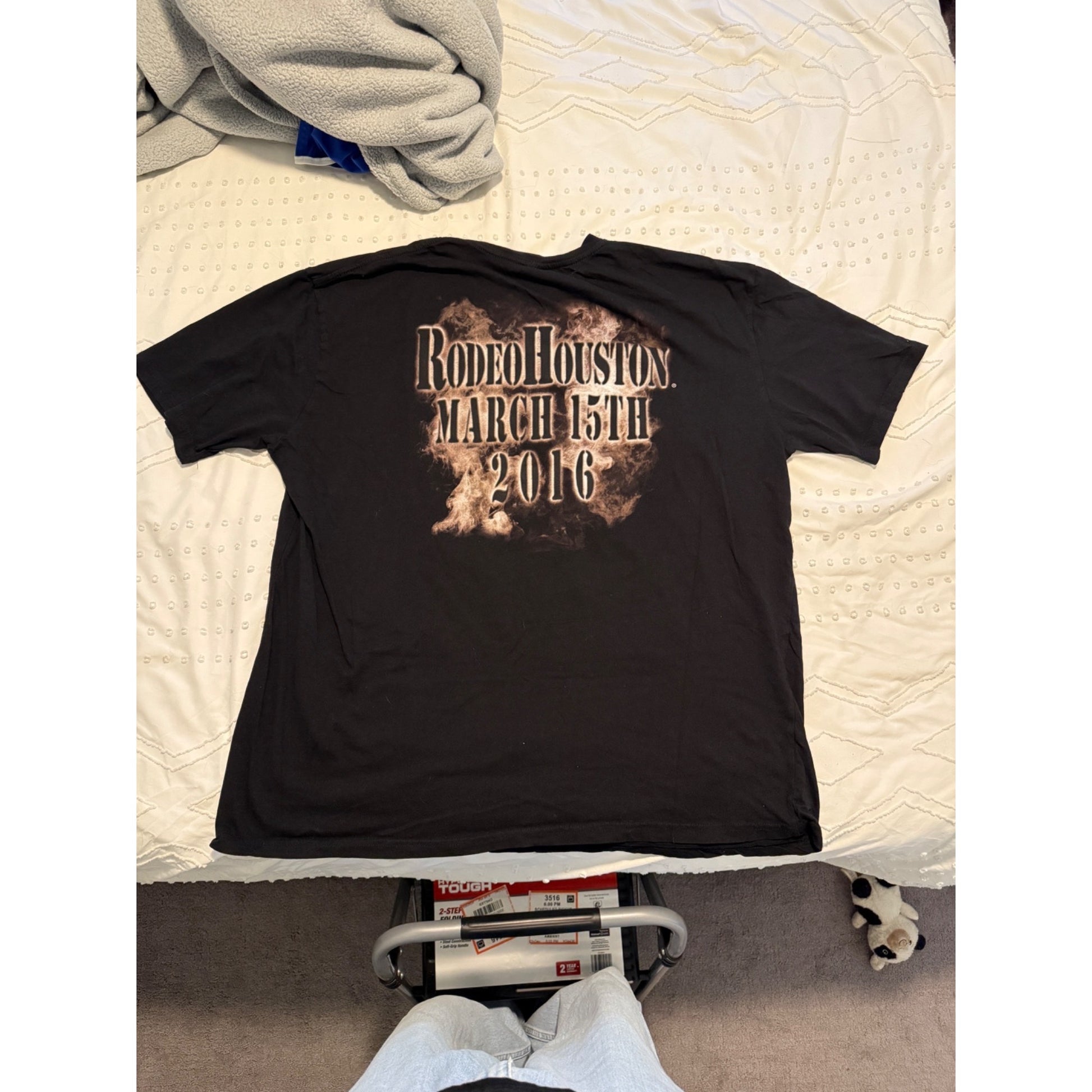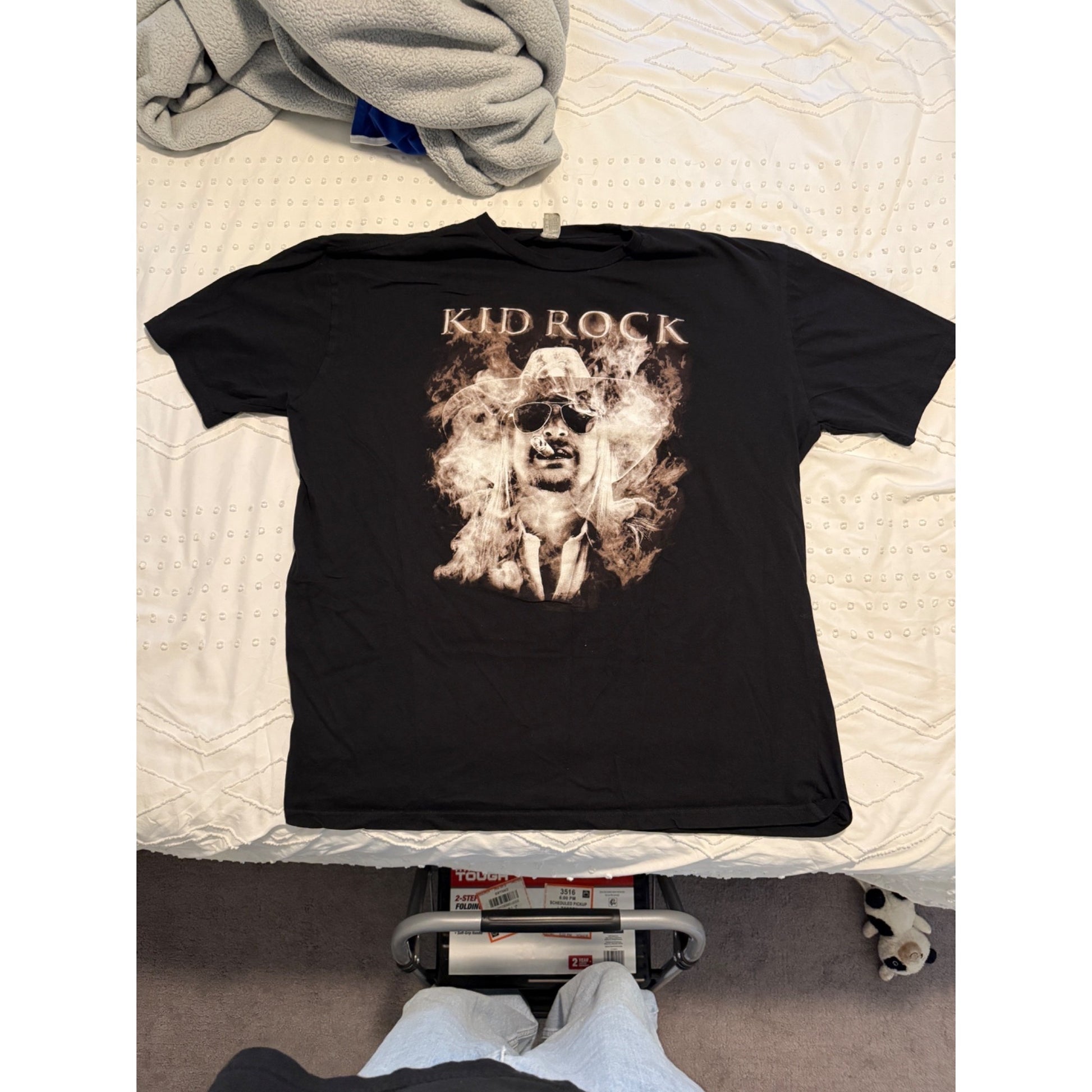 Rock Me Kid Rock Rodeo Houston 2006 short sleeve graphic T-shirt in black, men’s size 3XL. Features a bold front print from his Houston Rodeo performance with a soft cotton feel and oversized fit. Perfect for Kid Rock fans, Y2K fashion collectors, and anyone who loves vintage-inspired band tees.