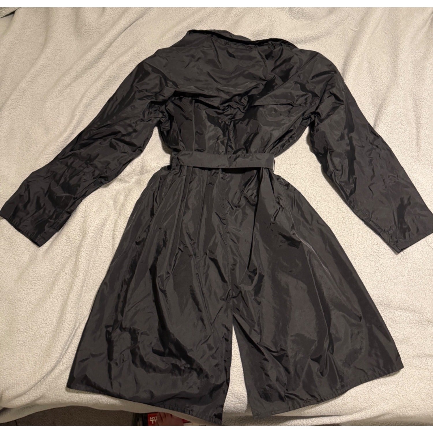 Vintage 80s Exclusive Lightweight Trench Coat Overcoat Womens Black Nylon Made Italy Size L