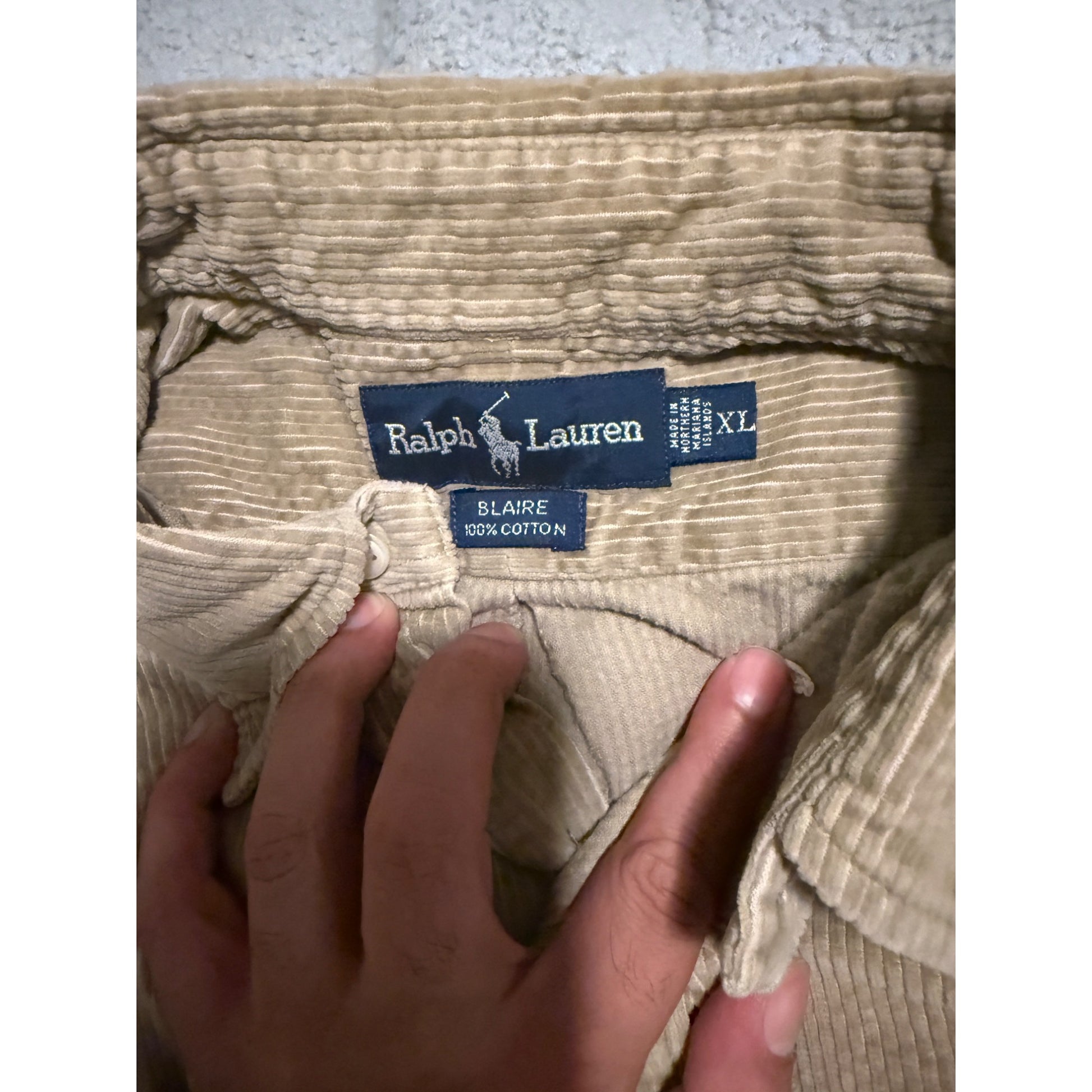 Vintage 90s Ralph Lauren Mens Blaire Beige Long Sleeve Button Down Coduroy Size XL