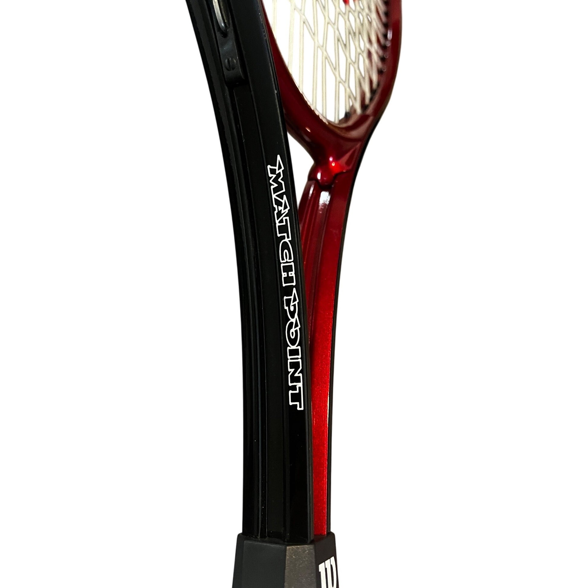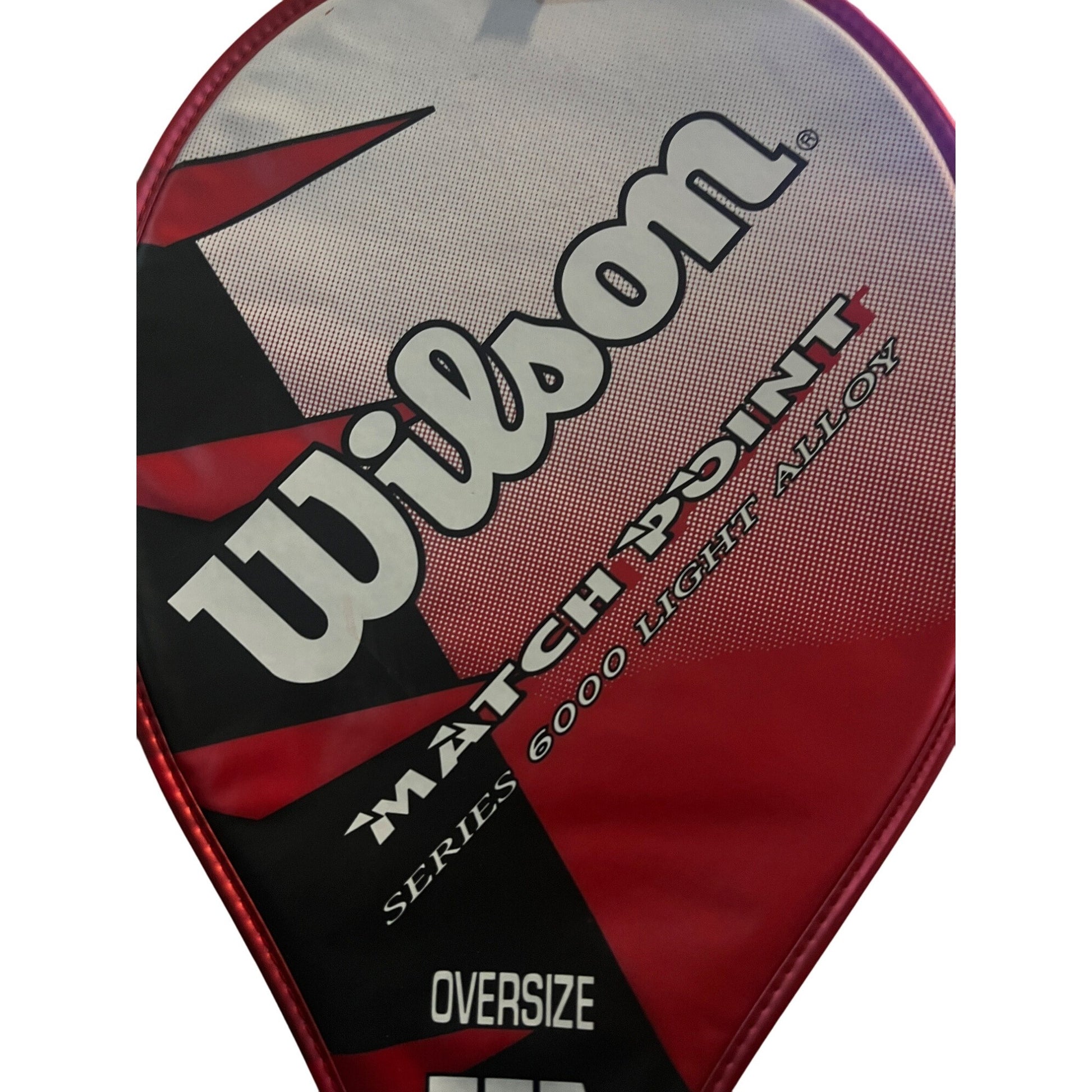 Wilson Match Point Series 6000 tennis racket in red, featuring a light alloy frame and a 4 3/8" grip size. Great for casual players or beginners, this vintage model offers a balanced feel with a lightweight construction for better control and swing speed. Classic Wilson branding and durable build.